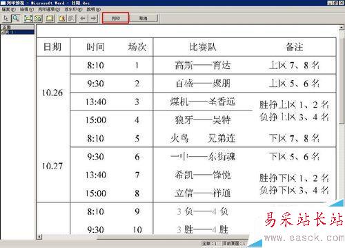 1、首先我們打開這樣一個A3的文檔,如下圖所示,這是一個A3頁面下設置的一個賽程表格,我們如何將這個表格直接打印為A4紙張上呢;