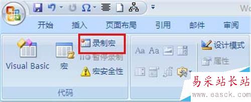 1、打開word2007文檔。單擊“開發工具”選項卡,在“代碼”組中,單擊“錄制宏”。