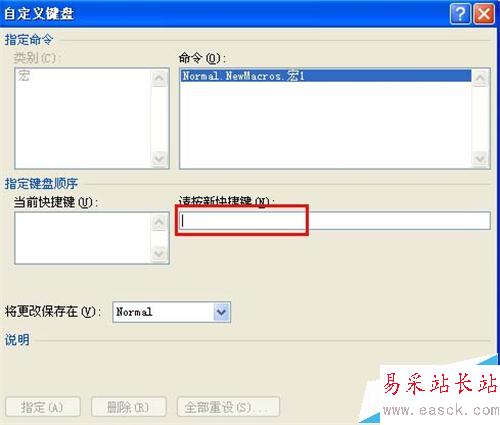 4、或者在第二步單擊“鍵盤”,彈出“自定義鍵盤”對話框,設置快捷鍵“ctrl+f”,單擊“確定”,開始錄制新宏