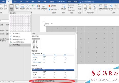 4、屬性設置好后,選中表格,依次單擊 插入→表格→快速表格→將所選內溶保存到快速表格庫,命名為三線表,確定,關閉的時候點擊確定。之后,就可以從插入→表格→快速表格 快速新建三線表。