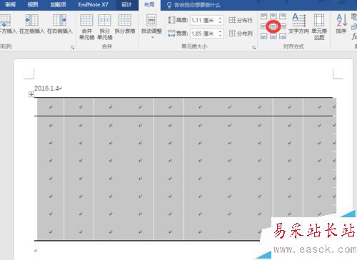 3、然后選擇表格,單擊設計,主要是對其方式,選擇布局中的水平居中。