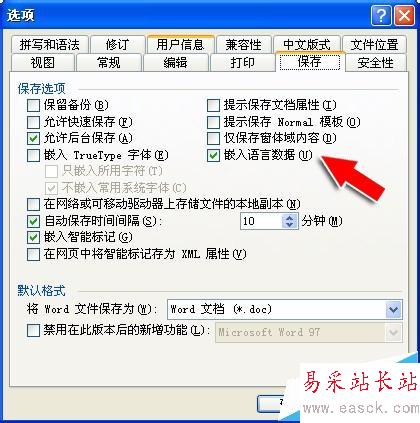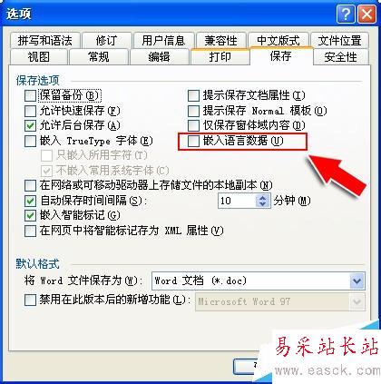 3、在【保存】項(xiàng)的選框中,查找【嵌入語(yǔ)言數(shù)據(jù)】
