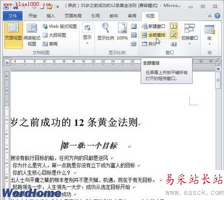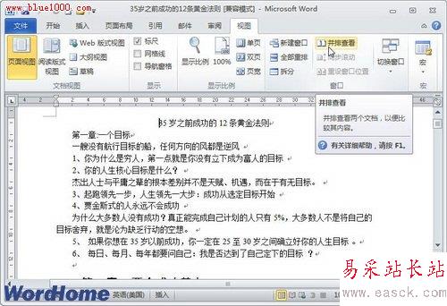 word2010具有多個文檔窗口并排查看的功能,通過多窗口并排查看,可以對不同窗口中的內(nèi)容進(jìn)行比較。在Word2010中實現(xiàn)并排查看窗口的步驟如下所述: