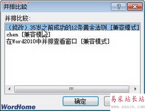 第2步,在打開的“并排比較”對話框中,選擇一個準(zhǔn)備進(jìn)行并排比較的Word文檔,并單擊“確定”按鈕,如圖2009120313所示。