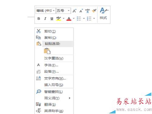 1、打開office2016組件,如word軟件,新建一個空白的文檔,在頁面上點擊右鍵,就能看到智能搜索的選項