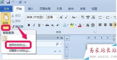 6、我后來還了解了一下,為了防止再次出現(xiàn)這樣的問題,當(dāng)你把visio中的圖片復(fù)制到word時(shí),請(qǐng)盡量使用選擇性粘貼,然后選擇Microsoft Visio 繪圖對(duì)象粘貼,這樣就不會(huì)出現(xiàn)亂碼了,如圖。點(diǎn)擊粘貼的小箭頭——》選擇性粘貼。