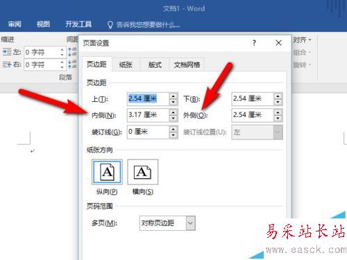 三、設置對開頁的頁邊距
