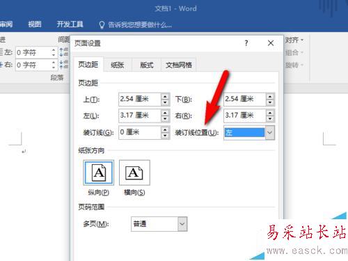 3、然后在“裝訂線位置”框中,單擊“左”或“上”。