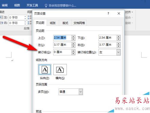 2、然后在“裝訂線”框中,輸入裝訂線邊距的寬度。