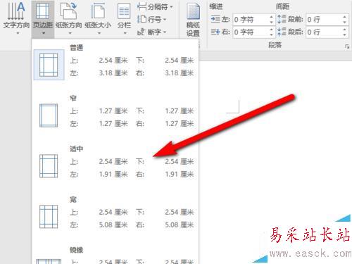 一、選擇預定義邊距設置