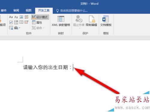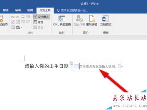 6、這樣在文檔的光標處就插入了一個日期控件。
