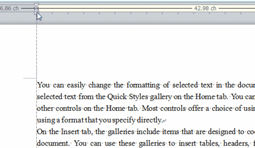 2.按住Alt鍵(或同時按住鼠標上的兩個按鈕)再拖動左右(上下)邊距,可精確調整其值(在標尺上會顯示具體值)。