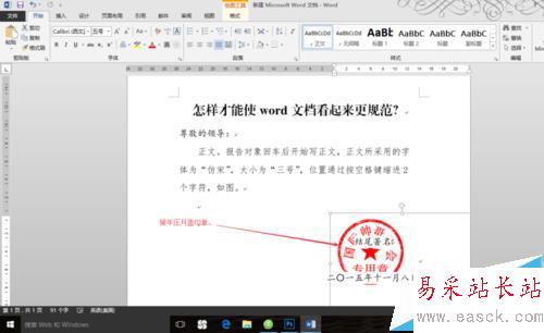 6、若是要蓋章,需要記住蓋章時(shí)要保持“騎年壓月”的原則,如圖。