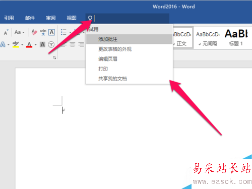 1.打開Word2016,在菜單欄上“視圖”菜單后面,會看到一個文本框,這就我們要用到的工具。