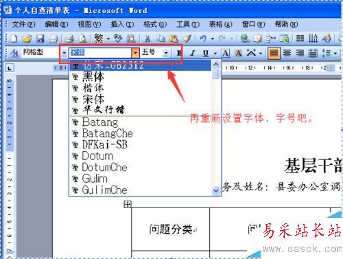 3、然后,再按照表格要求,對(duì)字體、字號(hào)情況進(jìn)行重新設(shè)定,就OK了。