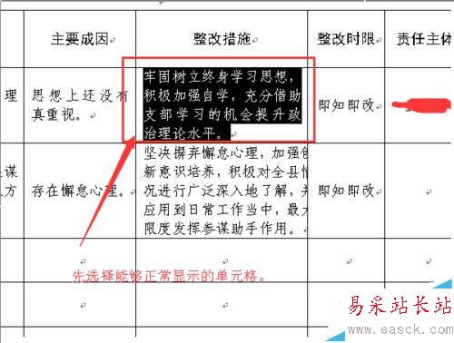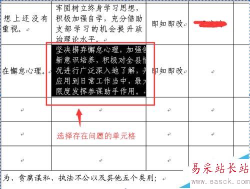 1、先選定存在問(wèn)題表格當(dāng)中的文字。