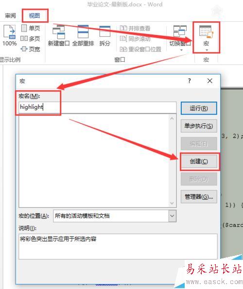 1、首先完成當前所有內容,建議把代碼放入單獨的文本框中,方便處理,也有較好的視覺效果。記得一定要拷貝一份副本!因為很可能因為代碼量比較多,處理宏的時候卡死,只能強制退出WORD了。
