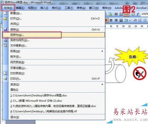 2、在Word菜單欄,我們選擇“文件”---“另存為”,如圖2所示。