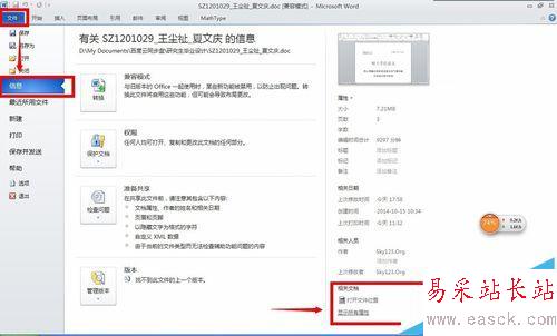 2、點(diǎn)擊文件 ——> 信息,在圖示位置,有一個(gè)文檔包含的鏈接,點(diǎn)擊斷開(kāi)鏈接,問(wèn)題就解決了。