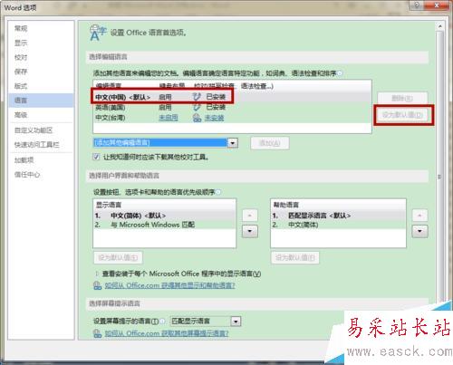 4、然后點“中文(中國)”在右邊點“設為默認值”,如下圖