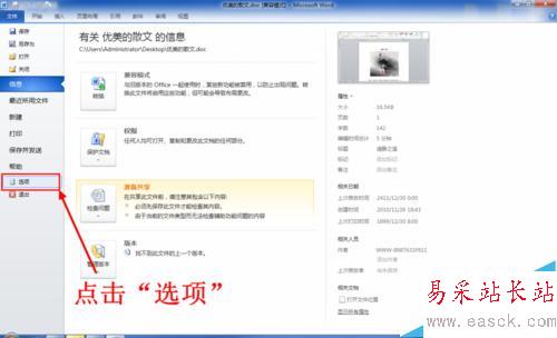 3、然后點擊文件選項卡里的“選項”,點擊后彈出word選項窗口。
