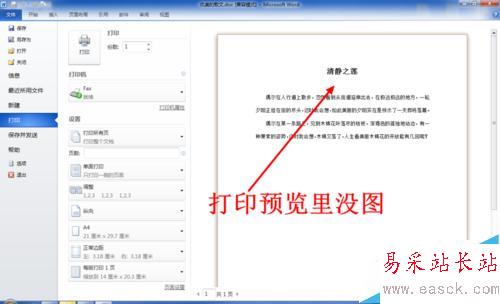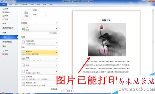 8、設置完成后在打開打印預覽,此時Word中插入的圖片就出現在打印預覽里了,問題得到解決。
