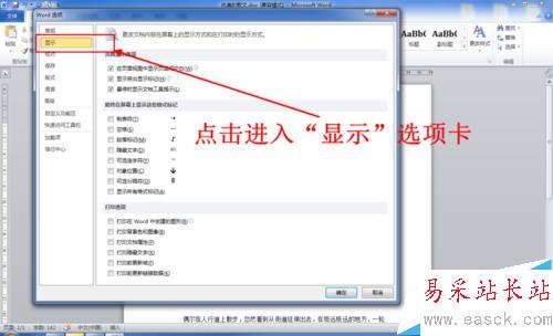 4、點擊Word選項窗口左側的“顯示”選項卡。