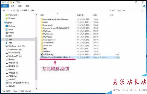 8、退出Microsoft Word 2010編輯窗口,打開保存文件的文件夾,用方向鍵移動到“在學校紀念抗日戰爭勝利70周年大會上的講話”文件;