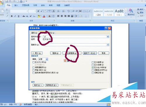 4.把文字都粘貼到word中。粘貼之后你會發現文檔格式很亂,有很多回車鍵怎么處理呢。首先點擊替換按鈕,輸入^P。如果輸入不了可能是輸入法的半角全角沒切換(請切換到英語輸入法半角)替換里面全不填,然后全部替換。