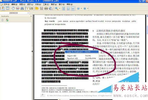 1.由于我使用的是foxit reader.所以我就以此軟件為例,講述把PDF轉換成word并手動排版的過程。首先介紹一下PDf文字有如下兩種情況,一種放大文字顯得不是很規范,一種則是標準字體排版的,現在的閱讀器的文字選取功能基本上都能進行大概的識別,但是第二種的準確率是明顯高于第一種的。所以首先推薦你使用第二種效果的PDf做轉換。