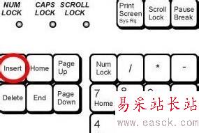 也可以用最簡單的方法直接按鍵盤上的“insert”鍵,可以自由切換“改寫模式”與“插入模式”;