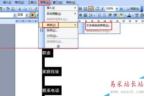 3、選中所有文字。單擊表格---轉換---文本轉換為表格。