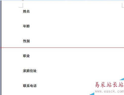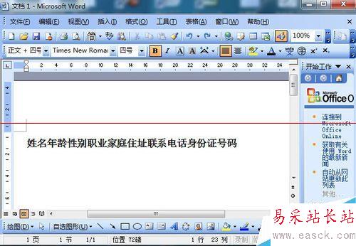 1、打開事前建立好的文檔。我們要把它設置成一張4行4列的表格,要求每一個文字段后面留一個空格。如何處理呢?
