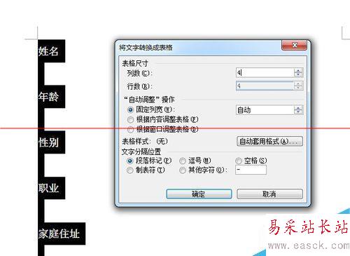 5、這樣,就把文字轉換為一個4行4列的表格了。