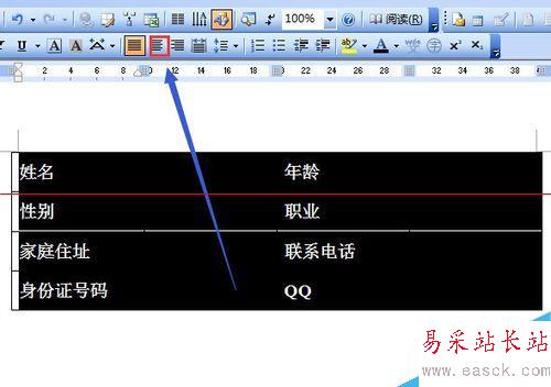 6、選中表格里的所有文字,單擊居中對齊按鈕。適當修飾一下表框與底紋,會使表格更加美觀大方。