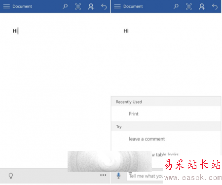 這次更新帶來的最可見的變化/功能,則可以在下面截屏的左邊底角上看到。你現在就有了一個小小的圖標,允許你僅在對話框中輸入文字或用你的語音,便能做一些諸如“打印,留下一則評論以及更多功能”的事。
