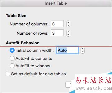 4、使用自定義寬度操作插入較大的表格,如果表格較大或者需要對列進行更多的控制,請使用“插入表格”命令。