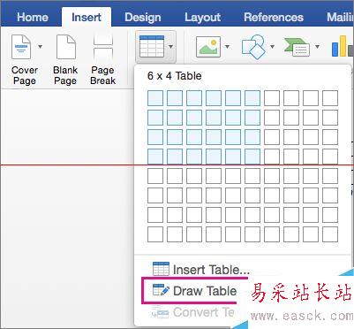 若要快速插入表格,請單擊“插入”>“表格”并將光標移動到網格上方,直到突出顯示所需的列數和行數。