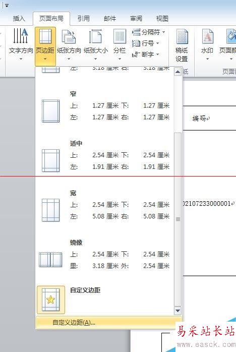 2、工具選項(xiàng)卡切換到【頁面布局】,選擇【自定義頁邊距】,如圖。