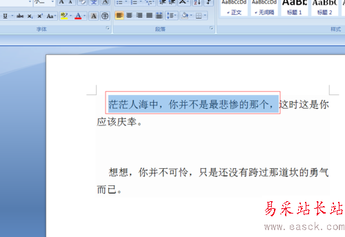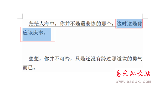 2、選擇你所要添加下劃線的字,我選的是“茫茫人海之中,你并不是最悲慘的那個”