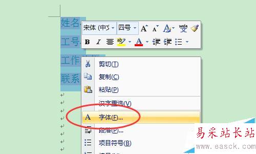 4、修改行距之后,仍然選中項目,右擊選擇字體。