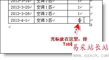 選取表格的最后一個單元格,按tab鍵即要新增一行。
