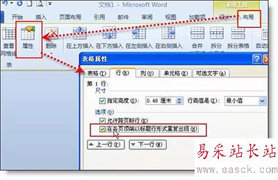 如果想讓每一頁都顯示標題行。選取一行或多行,表格工具 - 布局 - 屬性 - 選取“在每頁頂端..."