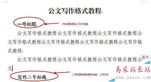 7、講解一下一號標題,二號標題的格式。一號標題用黑體三號不加粗,二號標題用楷體-GB2321,三號標題用仿宋-GB2321加粗。
