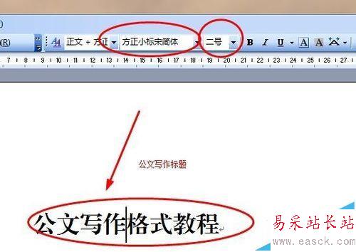1、標題設置。公文的標題一般都是設置為方正小標宋簡體(假如你的word文檔沒有方正小標宋簡體,那么就要自己去下載),二號字體,不加粗。