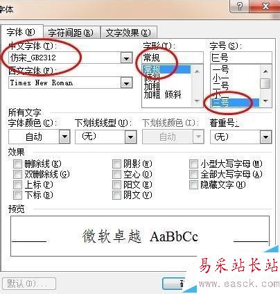 6、現在我們設置字體格式,點擊字體設置,打開字體窗口進行設置,一般公文內容都是用國標仿宋,就是仿宋-GB2321,常規字體,默認三號。