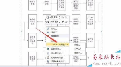 7、在visio對象中選擇打開,如果選擇編輯visio打開的效果將與雙擊打開的效果相同;