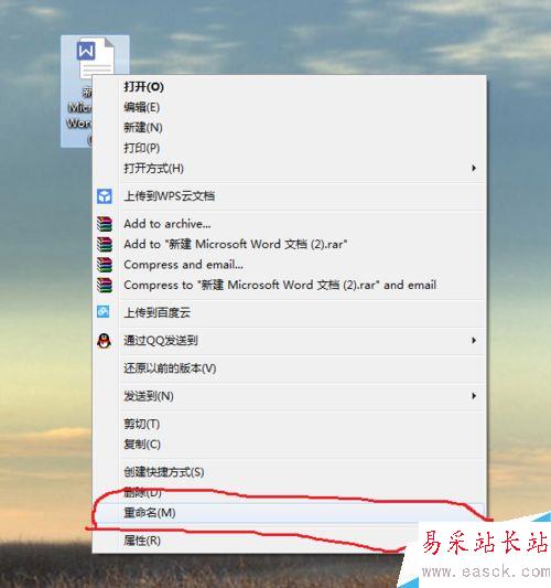 3、下面我們把文件的名字改成我們想要的。在文件上右擊,出現一個窗口,在靠近最后的位置找到重命名,左擊,然后在輸入欄輸入你想要的名字。