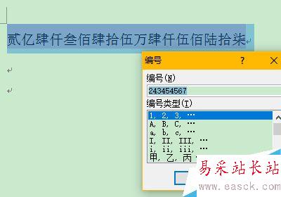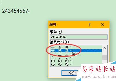 3、單擊編號按鈕后,彈出一個編號對話框,里面羅列了很多編號類型,我們選擇漢字大寫的那個。