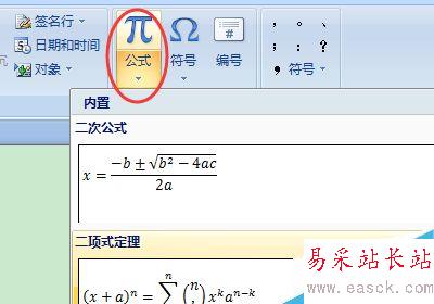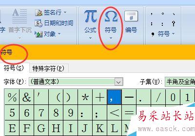 6、我們可以看到符號組中還有兩個按鈕,一個是公式一個是符號,符號很簡單,一些比較復雜的符號不能直接用鍵盤輸入,可以在這里找到。